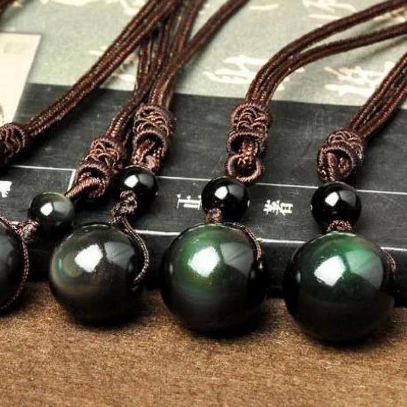 Natural Obsidian Necklace Buddha Amulet